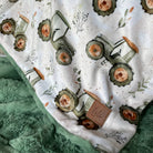 Un côté motif en minky imprimé au Québec ou en Amérique du Nord (pour certains motifs)