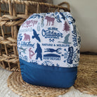 L’extérieur de la couche est fabriqué d'un polyester à motif et de deux doublures de tissu imperméable (PUL) 100% polyester.