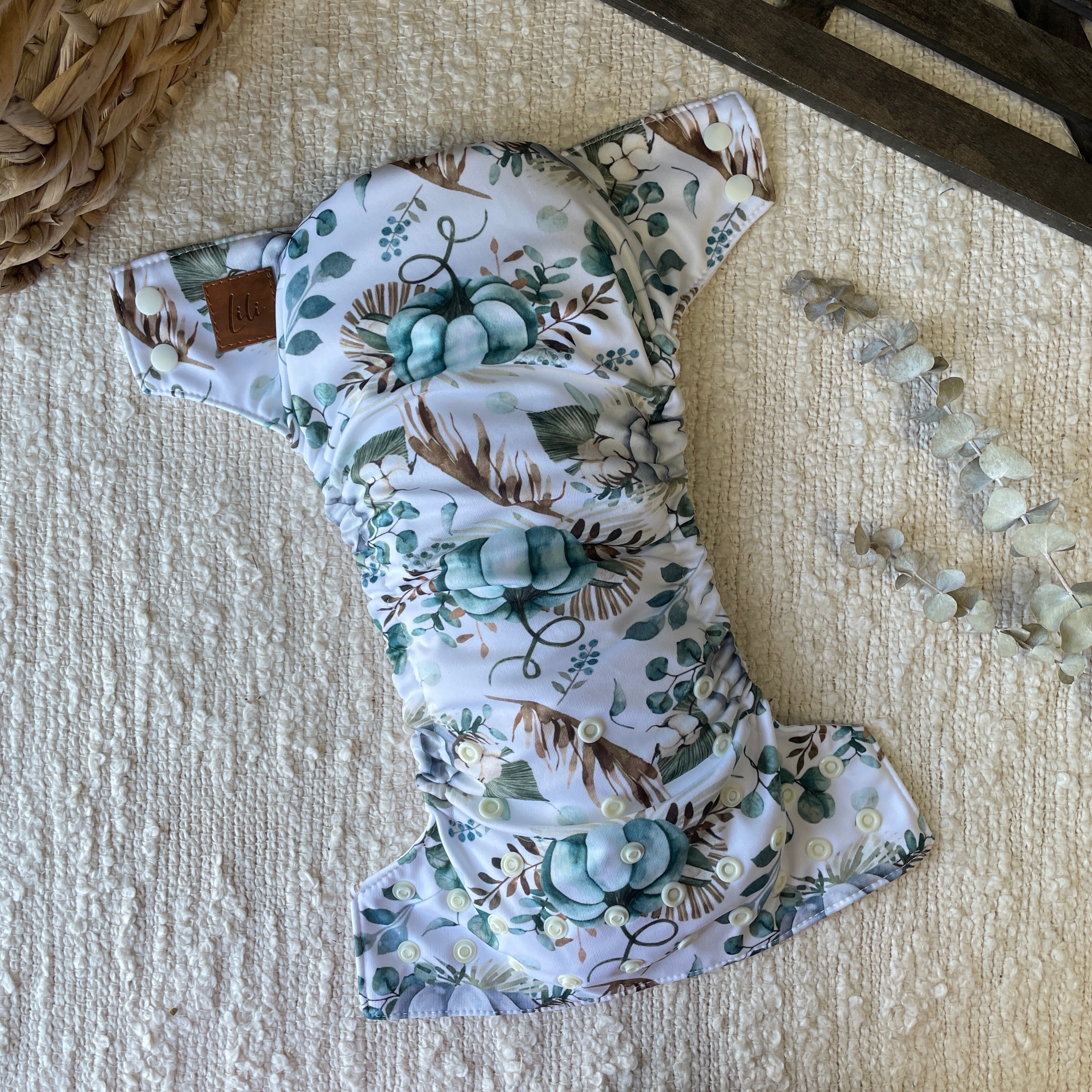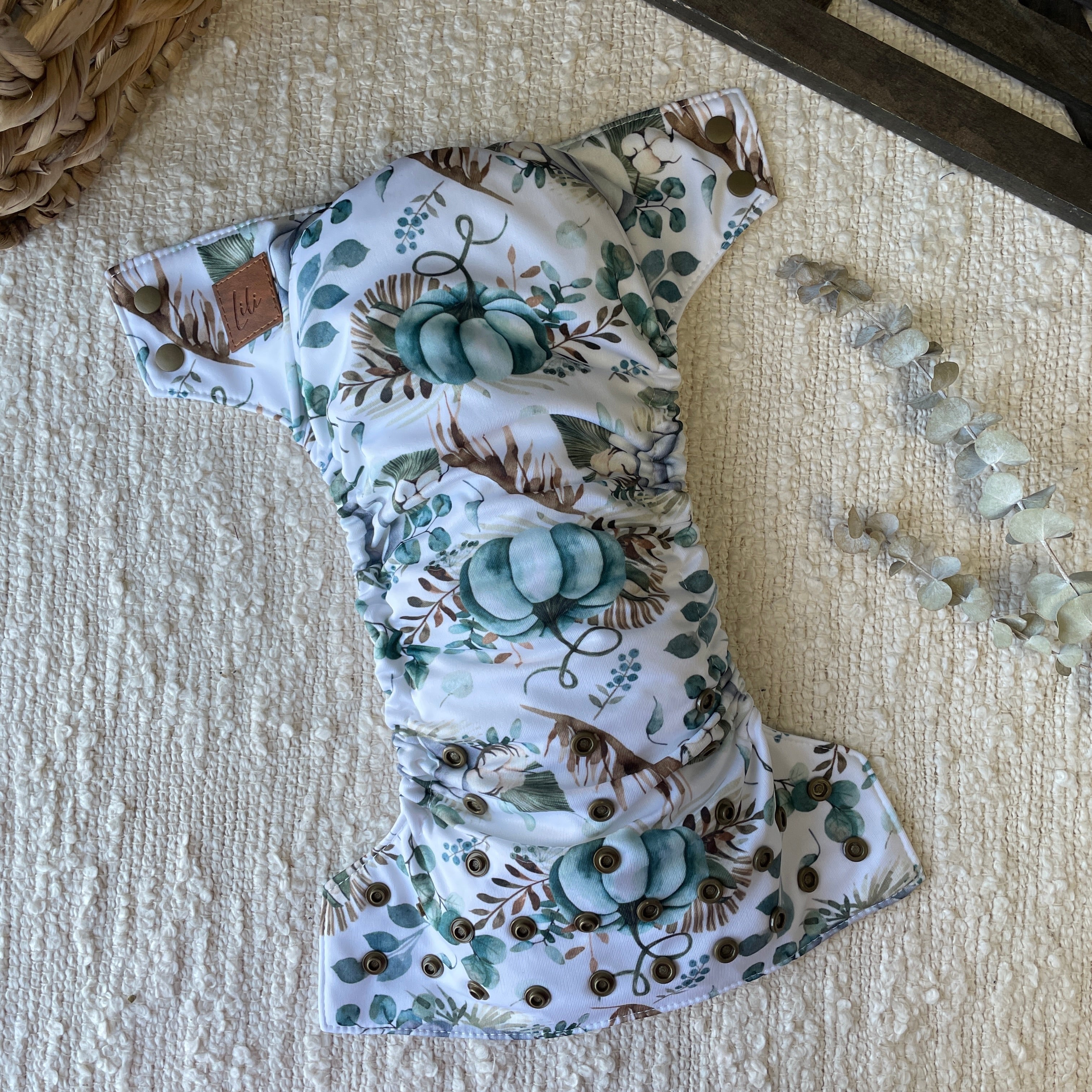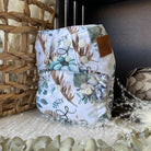 L’extérieur de la couche est fabriqué d'un polyester à motif sur toute la surface de la couche et celui-ci est entièrement doublé de tissu imperméable (PUL) 100% polyester. Notre couche tout motif est plus mince que notre couche wrap tout en étant aussi étanche !