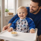 Une coupe ample, une excellente liberté de mouvement, et un détail signature qui change tout : la cachette à miettes. Sa pochette ramasse-miettes récupère les miettes, les bouchées échappées et les petites éclaboussures avant qu’elles finissent au sol, sur la chaise ou dans les plis des vêtements. Simple. Brillant. Indispensable.